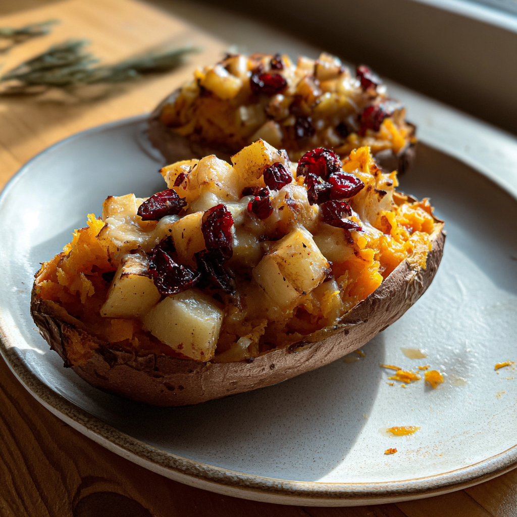 Fold the cranberry-apple mixture into the sweet potato mash.
