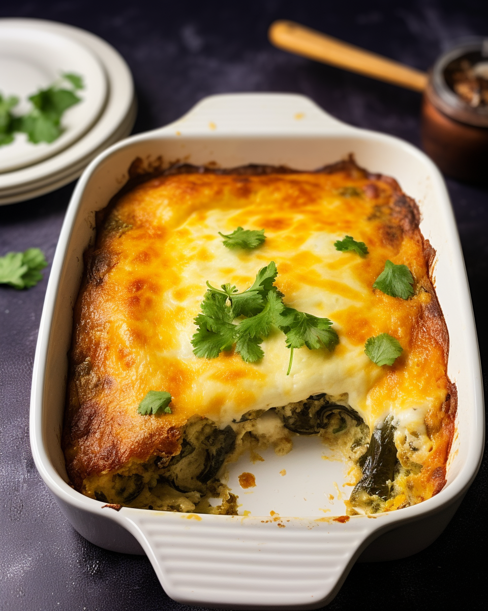 Pour the egg batter evenly over the layered ingredients. Bake for 35–40 minutes, or until the casserole is set and golden on top. -