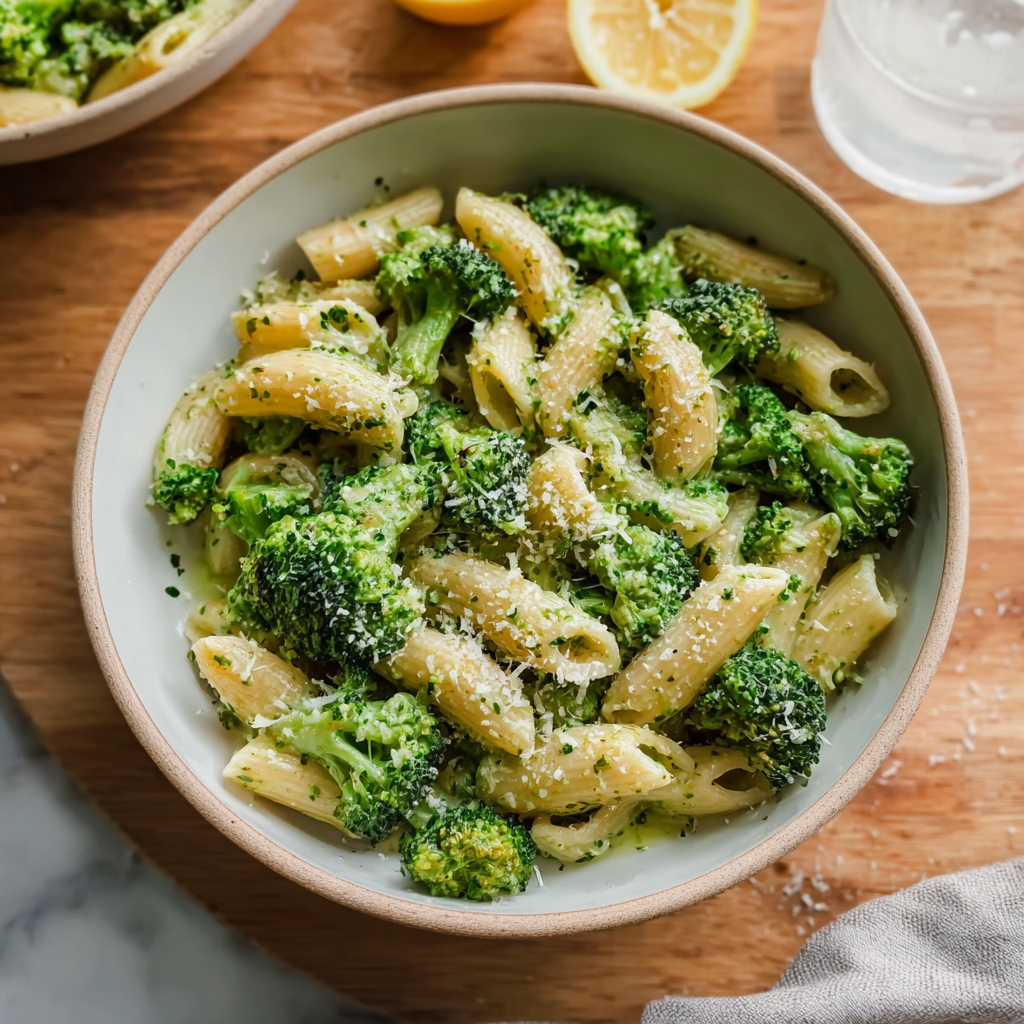 In the last 3–4 minutes of pasta cooking time, add the broccoli florets to the boiling water with the pasta.