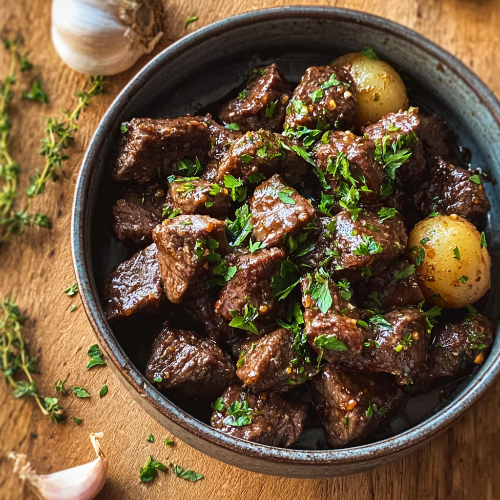 Heat olive oil in a large skillet over medium-high heat. Brown beef bites in batches until nicely seared on all sides (about 2โ3 minutes per batch). This step adds flavor but can be skipped to save time.