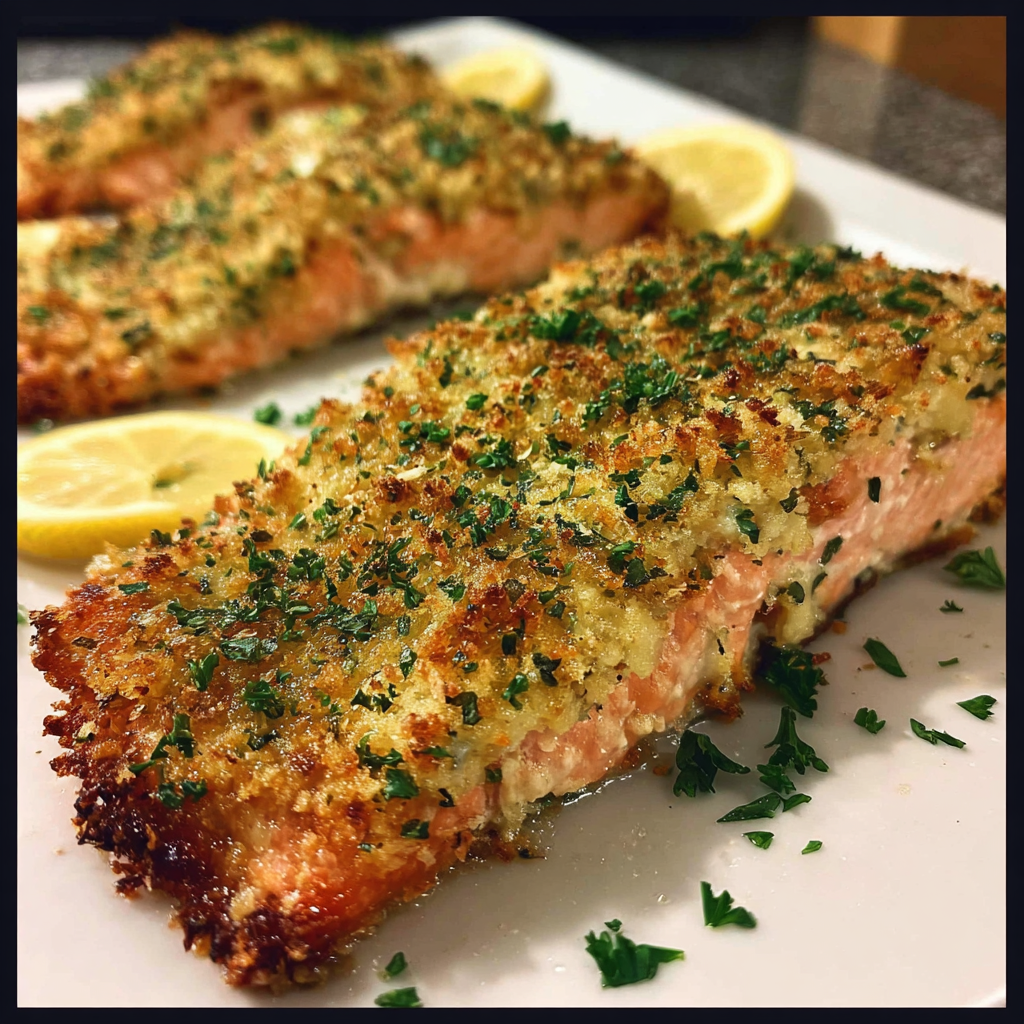 Bake for 12–15 minutes, depending on the thickness of your salmon, until the topping is golden and crisp and the salmon flakes easily with a fork.