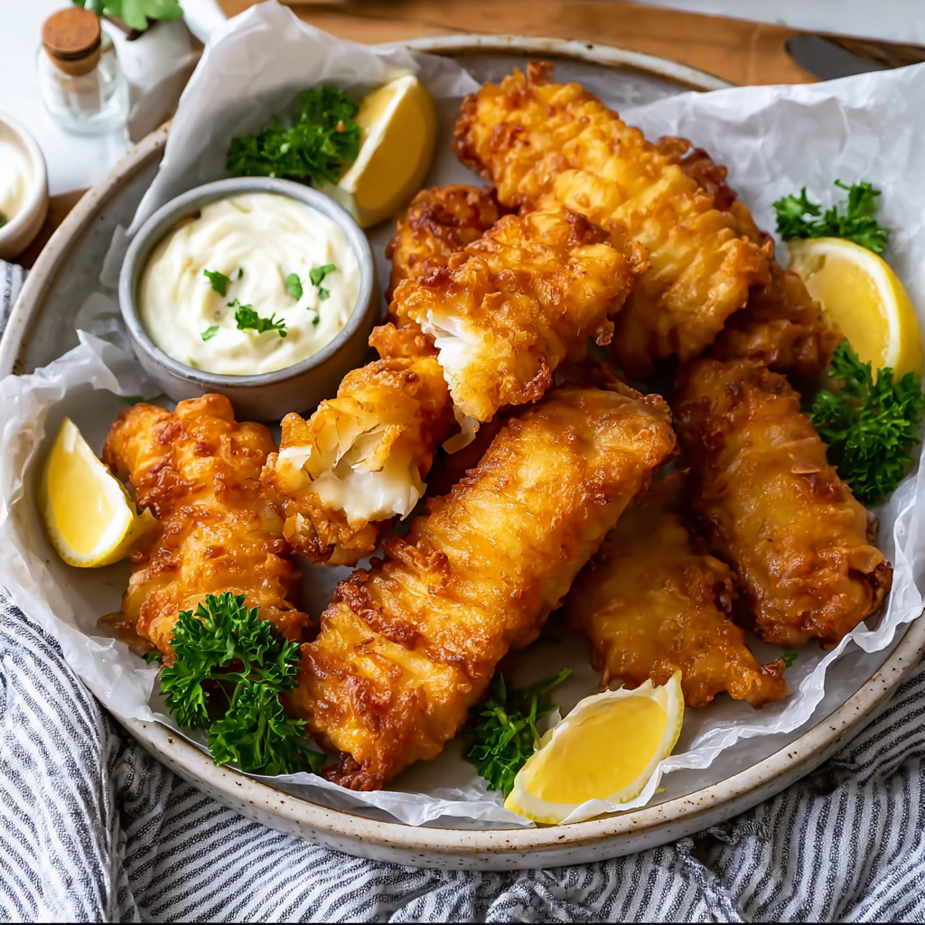 Gradually add the cold sparkling water or beer, whisking gently until just combined. Don’t overmix — some lumps are okay. The batter should be slightly thick but still runny enough to coat the fish.