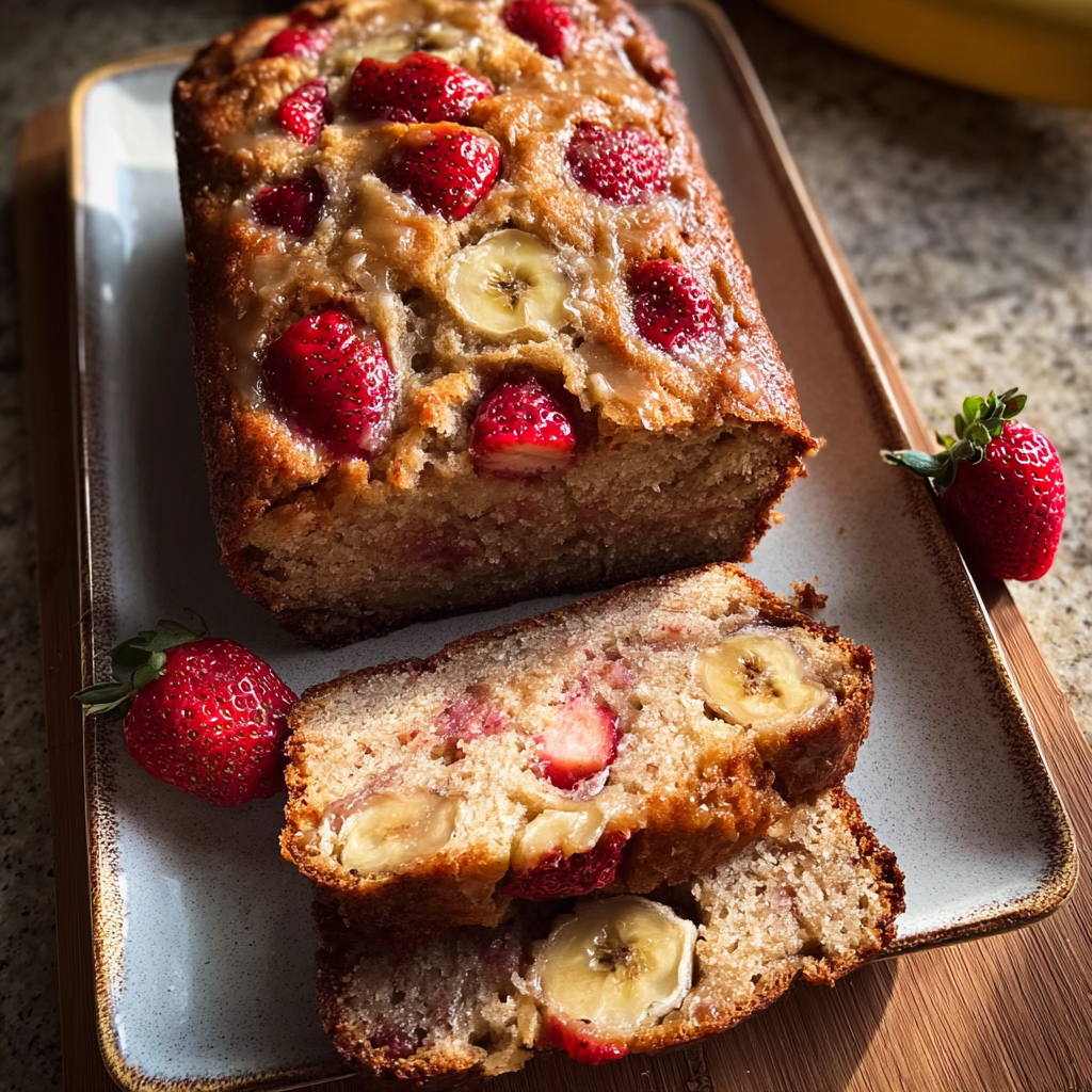 Pour the batter into the prepared loaf pan and smooth the top. Optionally, sprinkle a few extra strawberry pieces or a bit of sugar on top for a pretty finish.