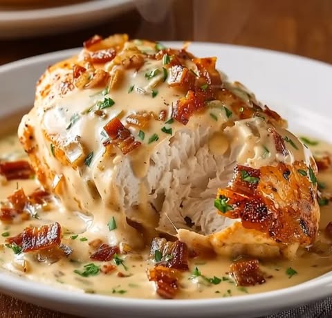 • Bake: Cover with foil and bake for 20–25 minutes, until chicken reaches an internal temperature of 165°F and cheese is melted.