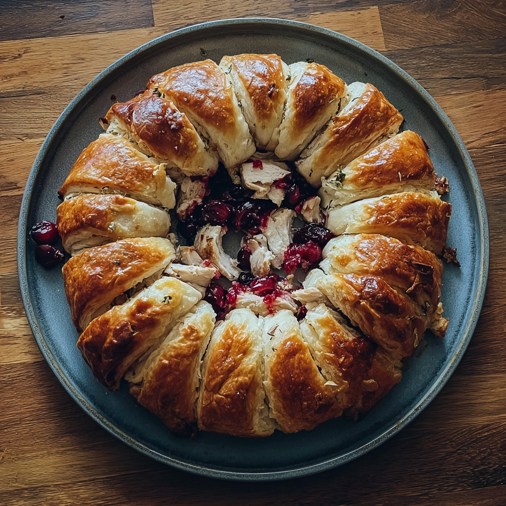 Spoon the turkey mixture in a ring around the inner circle (on the wider parts of the dough).